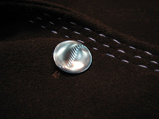 I like this one a lot but, it is slightly too big and I don't feel like redoing the buttonholes. BTW the color isn't as purple as the pic shows. It really is very close to the stitching in color. I just love the staggered brickwork pattern on the button and how it echoes the stitching.