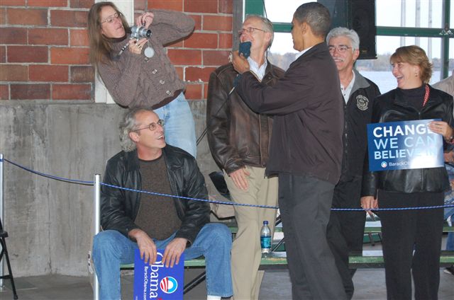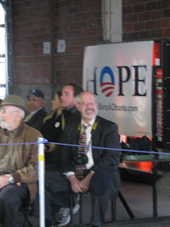 Many thanks to my brother Rick who was sitting across the stage from me, that's him, the cute fuzzy one. Without the photos from Rick's vantage point any proof of the Obama/CrazyLady knitting photo would not exist. Except of course those in the file the FBI now has on me.