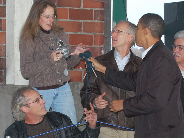 ReplyDeleteWhat a coup! I'm very impressed; it's not very often that one can outdo the Yarn Harlot. And Senator Obama was such a good sport. --Terry Ninjaknitter